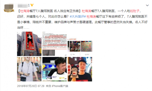 其实,这并不是杜海涛做餐饮行业第一次被投诉了,2018年杜海涛创立的某自助餐厅,就有7名消费者在就餐后腹泻拉肚子。