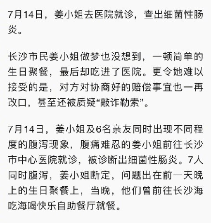 据当时媒体报道,“姜小姐”在杜海涛的餐厅举办了生日聚会,但没想到这顿饭却让她吃进了医院,并且还查出细菌性肠炎。