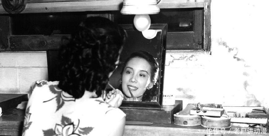 民国历史老照片:一个民国女子正在对着镜子化妆,非常有气质,五官也特别的精致。