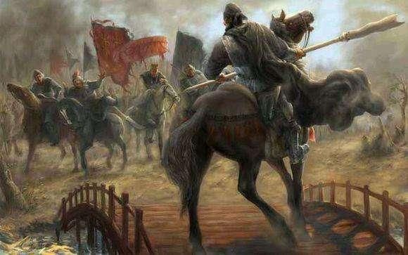 先主闻曹公卒至,弃妻子走,使飞将二十骑拒后。飞据水断桥,瞋目横矛曰:"身是张益德也,可来共决死!"敌皆无敢近者,故遂得免。《三国志蜀书张飞传》