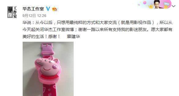 2019年9月,霍建华工作室清空微博,并宣布关闭微博账号,以后用作品来跟影迷沟通。