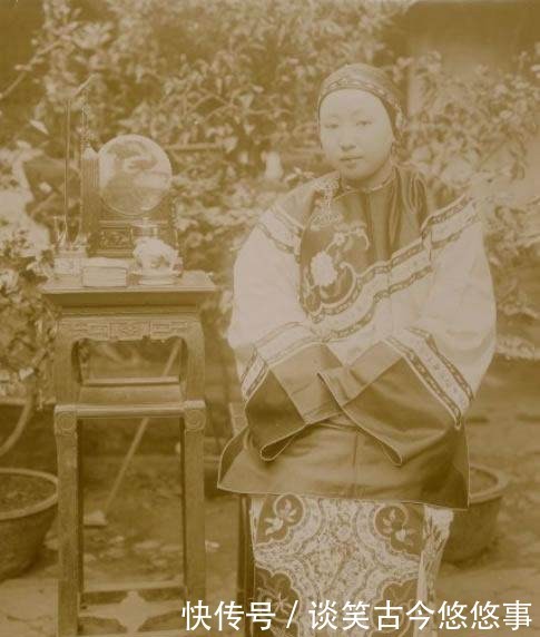 这位是云南府官员李金之妻,裹着三寸金莲,穿着传统服装。虽然照片不是很清晰,我们仍然可以看出她的衣服有繁复的纹饰,非常精美华丽。