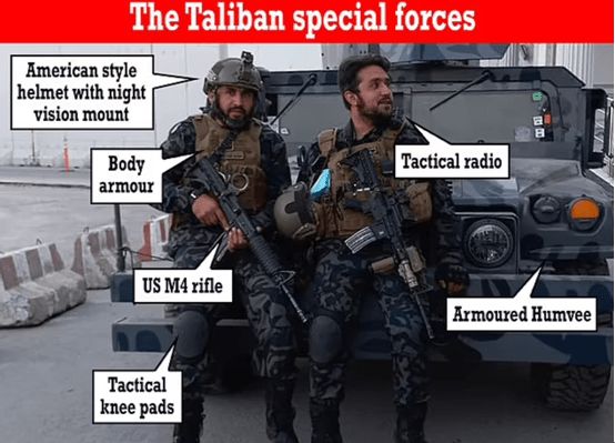 最具讽刺意味的,是全美械装备的塔利班特种兵,随后大摇大摆进入机场。