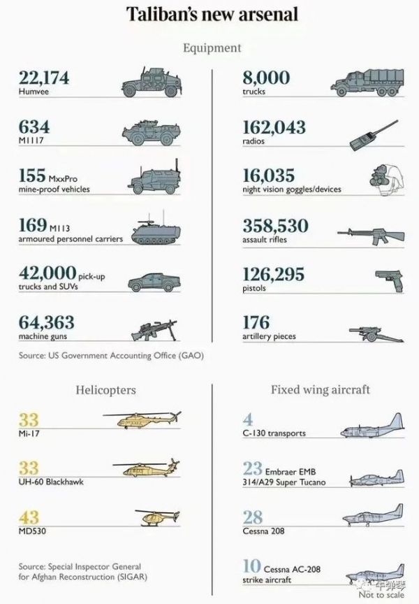 美国媒体帮塔利班统计了一下。有美国这个运输大队长,塔利班现在拥有: