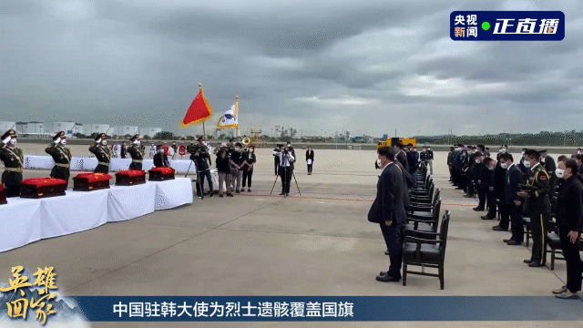 中国驻韩大使邢海明弯下腰,认真而庄重地在每一个志愿军烈士遗骸棺椁上,仔仔细细、整整齐齐地覆盖上国旗,用手抚平褶皱,并且向烈士遗骸深深鞠躬。正是因为有这些烈士们抛头颅,洒热血,才有我们今天幸福的生活,家人永远惦念!祖国从未忘记!