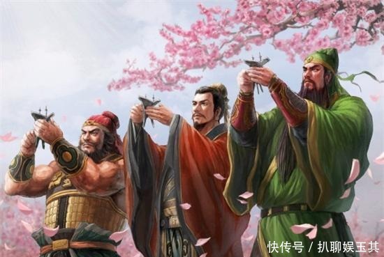 根据小说《三国演义》第一回的说法,东汉末年,黄巾军起义,汉室衰微,刘备苦于报国无门,偶遇关羽和张飞,三人相见恨晚,志同报国,于是在桃园之中结义。适逢春风袭来,盛开的桃花在桃园中缤纷,三人宣誓为兄弟,画面感十足。实际上,《三国演义》是明朝时期的演义说法,正史中可没有桃园结义这一段。