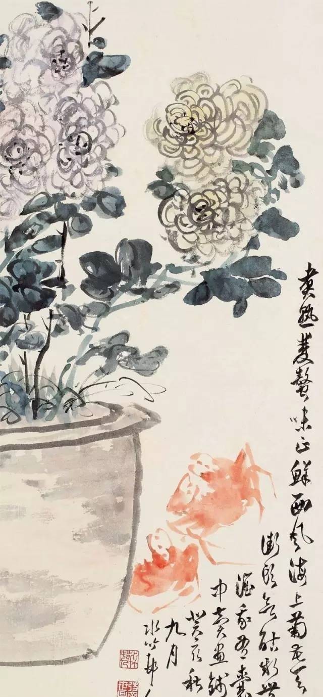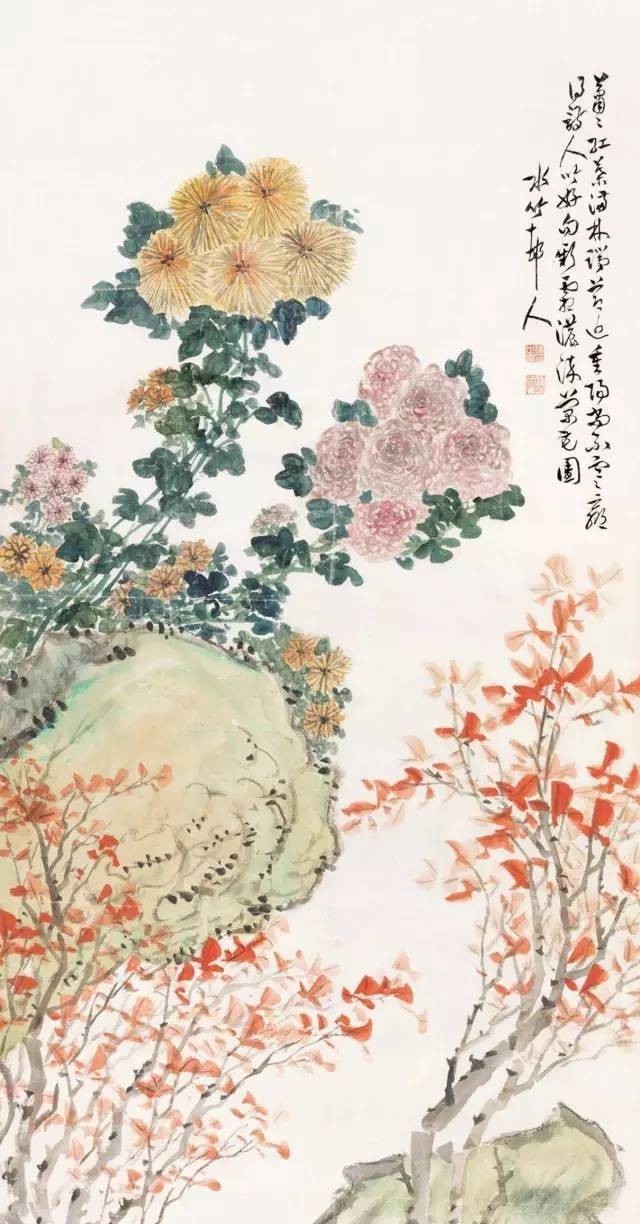 徐世昌 秋菊红叶图 立轴 设色绢本
