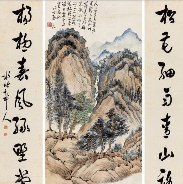 徐世昌 夏山图 草书七言联 镜心 立轴 设色纸本 水墨纸本