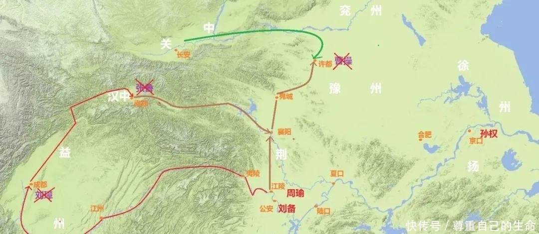 虽然这次暗算刘备不成,但是周瑜也没闲着,他为东吴的发展做出了一项极为重要的长远规划。在刘备回公安之后,周瑜专门来到京口,向孙权提出了一个宏大的军事计划:西进入川攻打益州,先统一长江上下游,形成真正的江防一体化,以长江天险为界北拒曹操。然后再以益州为跳板攻打下汉中,形成进可攻退可守的有利态势。待天下有变即可联合在关中的马超为援,进攻襄阳北图中原了。这就是著名的二分天下战略。那个时候,东吴上上下下都沉浸在对曹军连续胜利的喜悦和骄傲情绪之中,孙权被这个计划深深地吸引住了,很快就批准予以实施。周瑜随即返程去安排起兵事宜,不料却不幸病逝于返回江陵的途中,时年三十六岁。(注2)