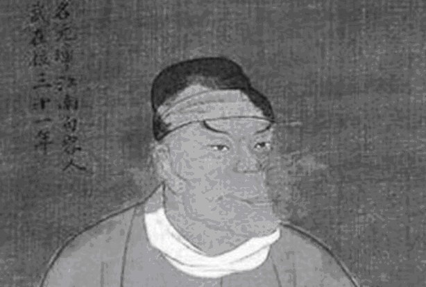 民间版的朱元璋画像。第一个版本是民间版的,主要是特点是下巴凸出,凹脸心,双眉竖立,典型的"鞋拔子"脸,也有人说这个版本的是满清王朝为了丑化明朝伪造出来的。