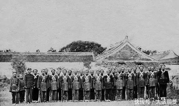 常安军合影。照片约莫拍于1870年代。常安军是太平天国时代,由外国人库克上校和华生少校带领的在上海、宁波一带弹压太平天国叛逆赞助清军作战的军队中的一支。