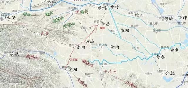 从图中可以看出,襄樊是荆州通往中原的必经之路,西边是武当山,东边是大洪山,中间只有一条狭窄的通道可供大军通行,襄阳和樊城就正好卡在两山的中央,可谓是咽喉要地。只要拿下襄樊,向北进军就是南阳,再往北走绕过平顶山,就是曹操老巢许都了。这条路一马平川,几乎无限可守,许都就暴露在关二爷刀下了。可以说,襄樊就是曹操家的大门。