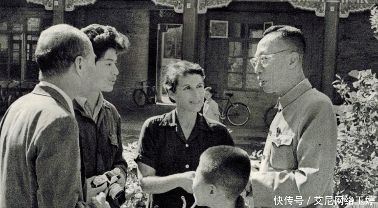 拍摄这些照片的,不是别人,正是现代著名诗人、翻译家萧三的德国妻子耶娃(中文名叶华),图为叶华(左三)在采访溥仪。那时的溥仪整天穿着中山装,身上早已找不到一点皇帝的味道。