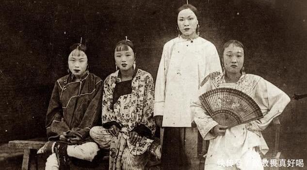 晚清老照片:照片中的女子沦落风尘之地,在那个时候,她们已经算是很漂亮的女子了。在装扮上也十分时髦,竟出现"网红"空气刘海,那时候的女子还真是会"臭美"!细细看一下,她们其实也很悲哀,脚掌只有3寸,看着都疼。