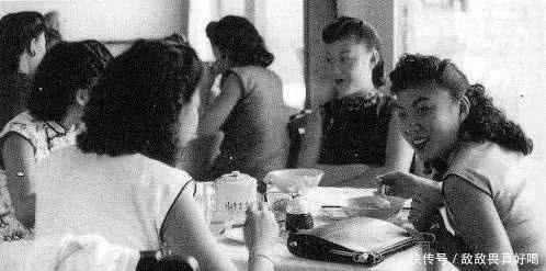 这一看就是富家太太,烫着波浪头,穿着旗袍,坐在西餐厅里吃着可口的东西。