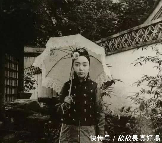 照片上的女子手拿西洋伞,站在那非常的优雅。她是西方的传教士,为了能够在中国有效的传播西方文化,彻底改变了西方的习俗,积极融入中国的圈子。她穿上了中式服装,拿着中国传统的折扇,连头发都换成了大清的样式,这样一看,也是一美女。