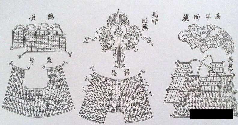 两晋南北朝隋唐时期的全铁马甲在宋代几乎销声匿迹。虽然宋朝重铠形制延续唐朝的札甲并加以改进,但马甲却变为铁皮结合。《武经总要》记载--"马装,则并以皮,或如列铁,或如笏头"。这里的"列铁""笏头"都是绘制在皮革上的花纹,与马铠上编缀的铁片外观相似,远望能形成一种全铁的假象。马装的含铁量下降,当然与宋代马政和马种都远不如唐代有关。但两晋南北朝隋唐时期的具装骑兵也确实存在负载过重,续航能力有所欠缺的问题。
