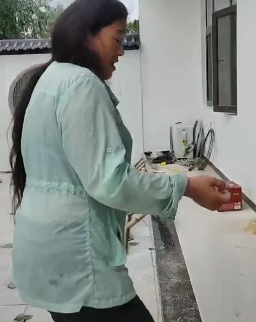 等大衣嫂走到自己的豪宅走廊进入大厅的时候,网友们又发现在角落里放着一些修房子用的器物,铁丝与酒瓶,还有一些没有用完的沙子。
