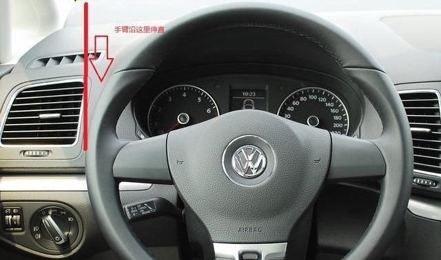 我国的车辆的规格都是左舵的,所以左前车轮与车主的距离会相比而言更加近,所以判断左右车轮的方法会有所区别。如下是判断左前车轮的方法,车主在驾驶座上的时候,将左手手臂放在方向盘的最左侧,然后伸展手臂使之平行于行车方向。当车主观察到手臂和路上的道路标线重合的时候,就说明了此时此刻左前车轮已经压在了线上,我们此时需要向右边调整行驶方向来避免压线。