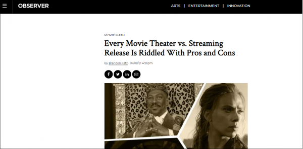 《纽约观察家报》总结称,对于电影公司来说,让消费者摆脱在家观看电影娱乐节目的习惯将是非常昂贵、耗时且困难的。疫情使观众习惯于期待立即得到满足,到2021年,消费者几乎要求能够在任何时间、任何地点观看任何东西。因此,无论主流电影公司选择哪条道路,为观众提供灵活的可观看渠道是适应这种新常态的关键。
