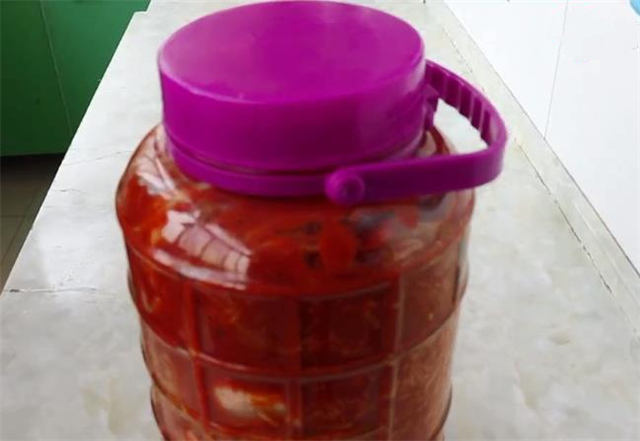8.装进一个无水无油的密封罐里,盖上盖密封保存一周后就可以吃了,这样做出来的辣白菜口感酸、辣、脆、甜,味道非常的不错,喜欢的朋友可以自己在家试试。