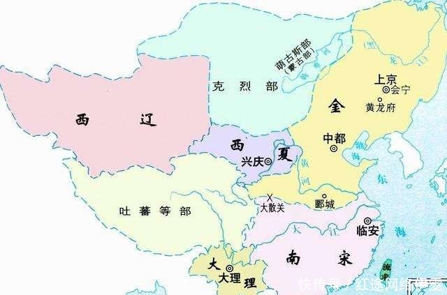 1206年之后,与辽、金、夏、宋并存的蒙古帝国