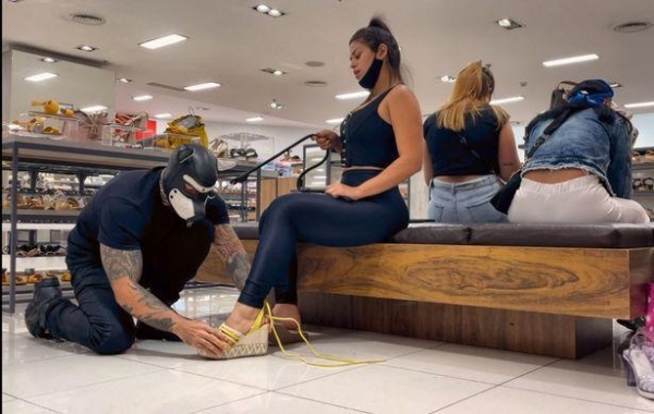 最后他们去逛了鞋店,听到卢安娜要求试鞋,亚瑟赶快蹲下为女友换上新鞋,令人瞠目结舌。