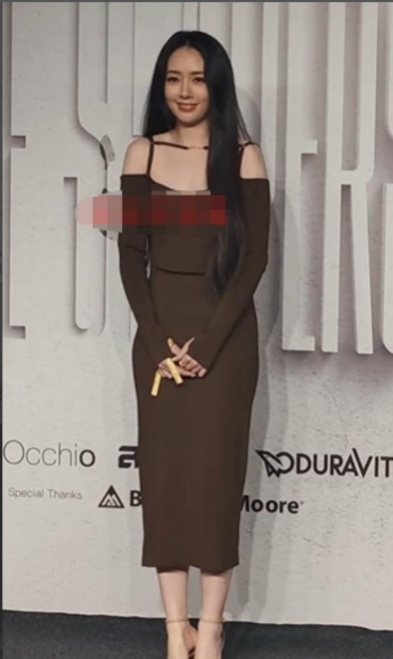 她整体的身材也是纤细高挑的类型,曲线前凸后翘很有女人味,但不知道是不是因为衣服太过修身的原因,郭碧婷的小腹有明显凸起,颇有点像怀上二胎的意思。