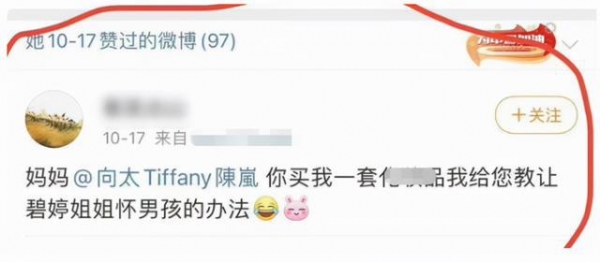 虽然陈岚表明态度不会逼郭碧婷生小孩,但她自己应该是很想再抱一个孙子的,此前她就被发现点赞过一条教学“生男孩”方法的动态。