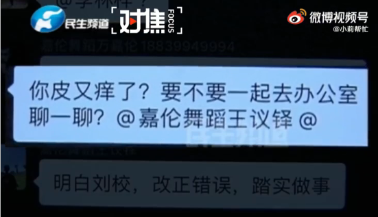 河南电视台-@小莉帮忙 消息,前一段时间,河南许昌,李女士反映自己在一家私人舞蹈培训机构任职,但因开会没有按照老板的流程和意愿,被女老板用鞭子抽打,其中还有人被扇耳光打头,4人体罚做俯卧撑,与此同时还有言语上的辱骂和精神控制。