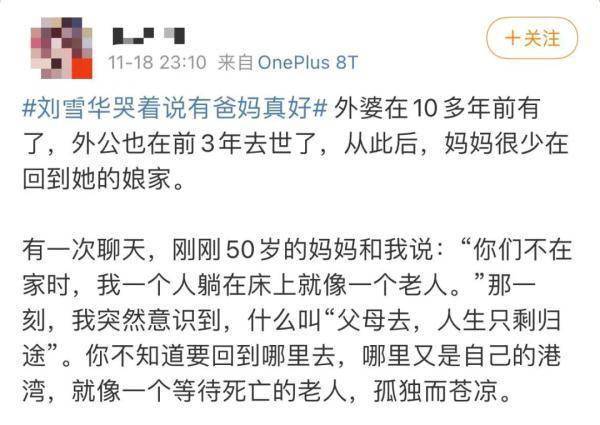 原标题:刘雪华节目中泪崩?称有爸妈真好!网友:整破防了