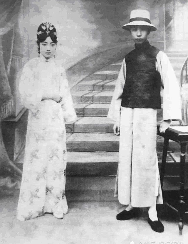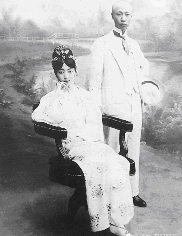 1922年,已满16岁的婉容被选入宫,成为清朝史上最后一位皇后,她不仅容貌端庄秀美、清新脱俗,且琴棋书画无所不通而在贵族中闻名遐迩。图为婉容与末代皇帝溥仪的合影,夫妻倆的面容都十分的青涩。