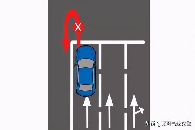 最左侧的车道如果只有直行箭头,此时即使没有禁止掉头的标志,也是不能进行掉头的。
