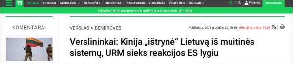 立陶宛“15分钟”新闻网爆料中国海关“删除”立陶宛