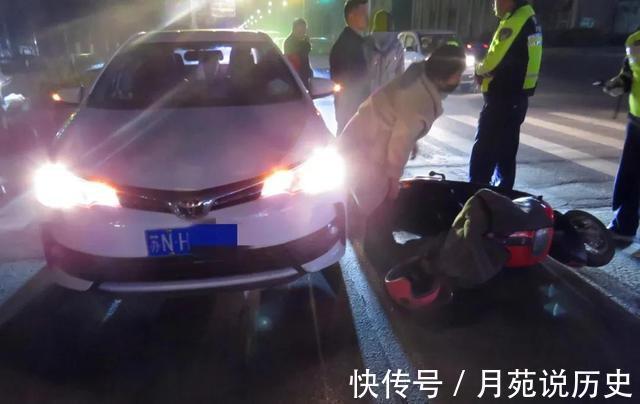 等车辆驾驶员看见横穿马路的电动车时,虽已采取紧急制动,但两车还是发生了碰撞。