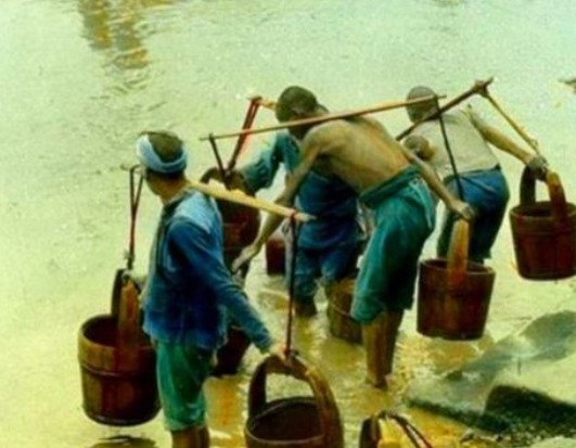 清朝罕见上色照:长江边挑水的人,这样看来其实挺心酸的。