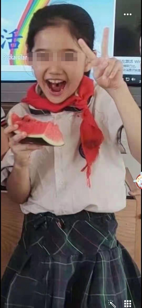 “我的宝贝女儿黄雅彤的生命永远定格在这一天。”黄雅彤是广西钦州市第三十九小学的学生,2021年10月20日下午,在外工作的黄荣平突然接到老师电话通知,让家长将黄雅彤接回家。“当我去到办公室的时候,女儿昏倒在地,头上鼓起鸡蛋大小的紫色肿块。”经过了解,黄荣平得知,女儿在上午上体育课时,在楼道拐弯被同学从后方撞到,头部不幸撞击到墙壁,晕倒在地。