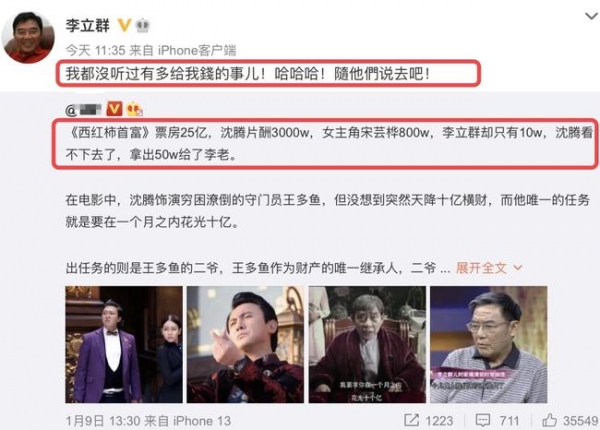 李立群发文辟谣称:我都没有听说过给钱的事儿,随他们说去吧!否认沈腾给自己50万,是网友乱说的。