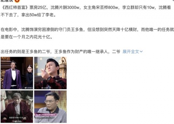 近日,不少媒体都在报道《西虹市首富》中李立群和沈腾的故事,称“李立群的片酬只有10万,沈腾看不下去了,拿出50万给了李立群。”