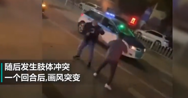 近日,在广东深圳,夜晚的马路上,两男子行车发生了剐蹭,于是两人下车理论,开始互相不服气,没说两句就扭打在一起,围观的群众正想看热闹,没想到一个回合下来,画风就变了。