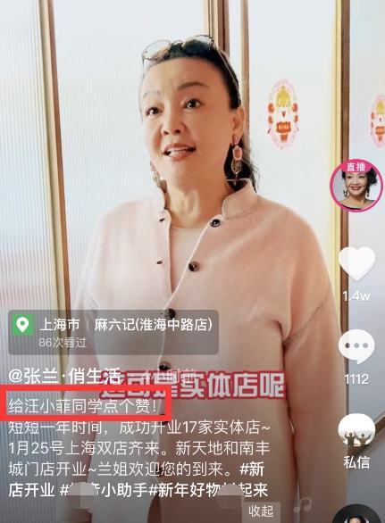 1月23日,张兰在个人社交平台晒出一段视频,狂赞儿子汪小菲:“给汪小菲同学点个赞!短短一年时间,成功开业17家实体店~”