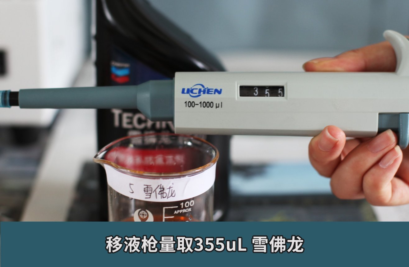 最后是雪佛龙,取出355ul燃油宝放到5号样品中