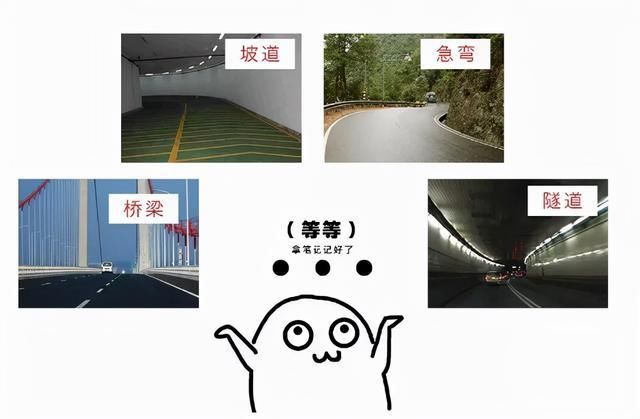 桥梁、坡道、急弯、隧道等容易发生危险的路段,同样禁止掉头。