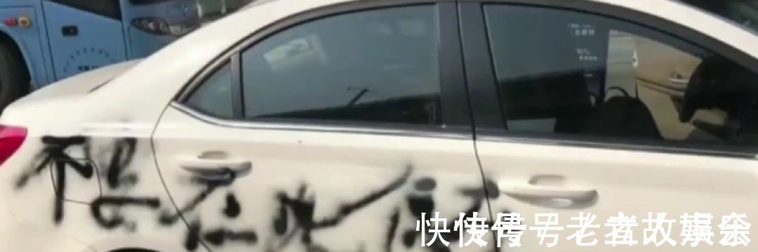 从视频画面里面看,车身的侧面被喷上了几个黑字,应该是"不要在此停车",另外车位的牌照和车标也被喷黑。如果这位车主没有注意到车牌的问题,那么一旦上路,可能会面临扣12分的处罚。