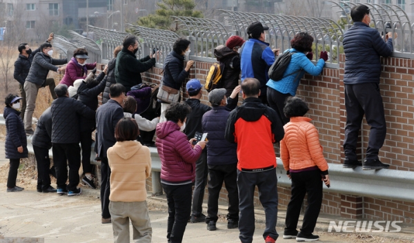 2月13日,前来朴槿惠养老私宅打卡的韩国市民。图片来源:Newsis