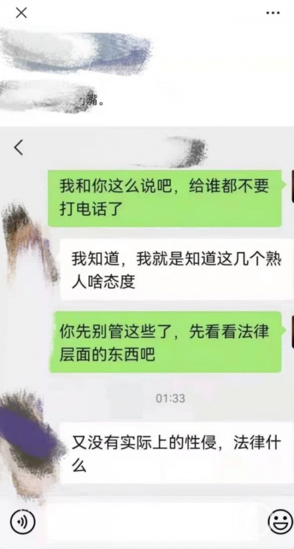 大林看到帖文后,曾在微信上告诉他人:“又没实际上的性侵,法律什么?”