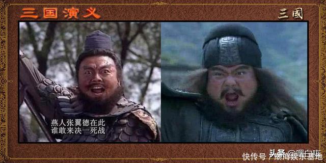 战场行阵中的张飞。一个是豹头环眼、目光凶猛,一个是披头散发、圆脸肉腮,还不戴头盔。台词的硬伤就是"戳他几个透明窟窿",声音也是沙哑的尖声,不浑厚有力,没有穿透力和震慑力,这很不张飞张翼德嘛。