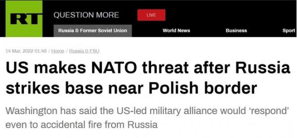 RT报道说,在美国哥伦比亚广播公司(CBS)当地时间13日播出的“面对国家”(Face the Nation)节目中,主持人玛格丽特·布伦南问沙利文,美方目前的政策是否“任何有意或无意对波兰领土或领空的袭击”都将被视为对北约的袭击。