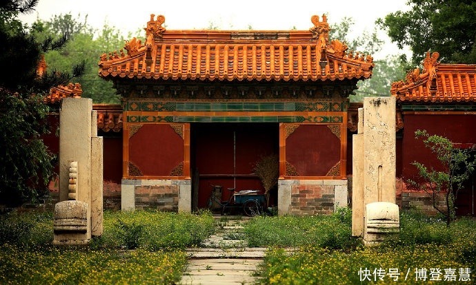 献陵宝城前的这座小山,名为玉案山,它从陵园左侧延伸而来,是献陵的龙砂。因其屈曲环抱陵前,所以,又是献陵的近案。风水中,"龙喜出身长远,砂喜左右回旋","龙虎环抱,近案当前",当论内明堂格局。献陵玉案山以及龙砂、虎砂和来山范围内的小格局,正是风水术士们所鼓吹的完美的内明堂格局。所以,修建献陵时只在明堂范围之内修建了宝城、明楼和一进院落。而将举行祭祀仪式的梭恩殿修在了玉案山前。