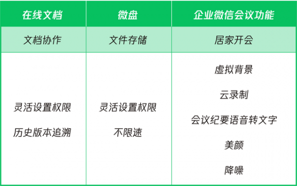 据微信介绍,如果是居家办公了,可以使用与腾讯文档、腾讯会议合作的企业微信 4.0 版本,推出了几个实用的在线协作功能。